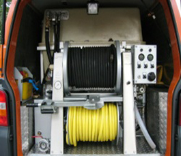 Unser kombinierter Saug- und Spülwagen ist mit mehreren Schlauchelementen und verschiedenen Spülschläuchen mit diversen Spüldüsen ausgestattet.